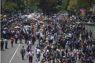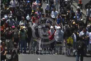 MÉXICO, D.F., 01SEPTIEMBRE2013.- La marcha de organizaciones civiles y sociales que partió del Monumento a la Revolución se han integrado a la marcha de la Coordinadora Nacional de Trabajadores de la Educación, quienes en un primer momento iban a marchar rumbo a los pinos y de último momento se desviaron a la Cámara de Diputados, ambos contingentes se enfilan al Palacio de San Lázaro en donde por la tarde el secretario de Gobernación Miguel Ángel Osorio Chong entregará el 1er Informe de Gobierno del Ejecutivo. En la imagen los manifestantes se mantienen sobre Fray Servando al cruce con Tlalpan. FOTO: ADOLFO VALTIERRA /CUARTOSCURO.COM