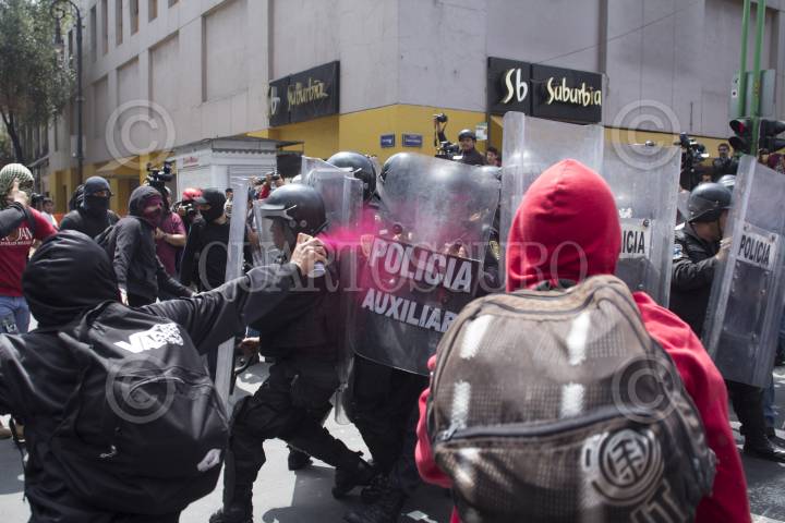 MÉXICO, D.F., 01SEPTIEMBRE2013.- Un grupo de jóvenes que salió del Monumento a la Revolución y se dirige a San Lázaro para protestar por la reforma energética tuvo un enfrentamiento con granaderos a la altura de Eje Central. FOTO: DIEGO SIMÓN SÁNCHEZ /CUARTOSCURO.COM