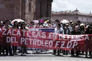 ZACATECAS, ZACATECAS, 1SEPTIEMBRE2013.- Integrantes del movimiento #132 y exbraceros realizaron una marcha en contra de la reforma energética y en múltiples pancartas exigían: “PEMEX no se vende se defiende". FOTO: EDGAR CHÁVEZ /CUARTOSCURO.COM