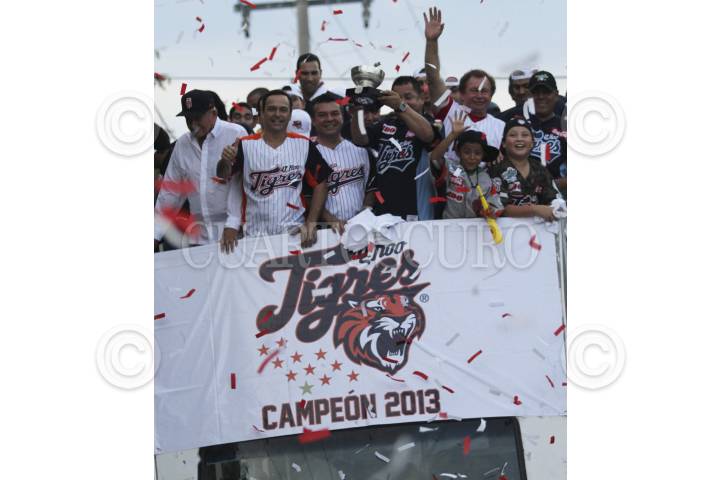 CANCUN QUINTANA ROO 01SEPTIEMBRE2013.-Los tigres de Quintana Roo, festejaron el campeonato de la liga mexicana de beisbol con un desfile en las principales avenidas y un convivio en el estadio Beto Ávila, donde cientos de aficionados se reunieron. FOTO ELIZABETH RUÍZ /CUARTOSCURO.COM