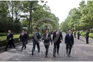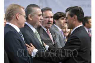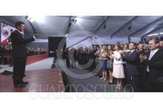 MÉXICO D.F., 02SEPTIEMBRE2013.- El presidente Enrique Peña Nieto dirigió un mensaje a la nación con motivo de su primer Informe de Gobierno en la residencia oficial de Los Pinos a nueve meses de su administración. Al evento asistieron Arturo Escobar y Vega, líder del PVEM en la cámara de diputados, Manlio Fabio Beltrones, dirigente del PRI en San Lázaro, y Emilio Gamboa Patrón, coordinador del PRI en el Senado. FOTO: PRESIDENCIA /CUARTOSCURO.COM