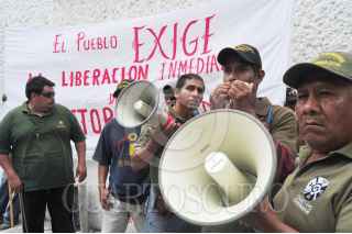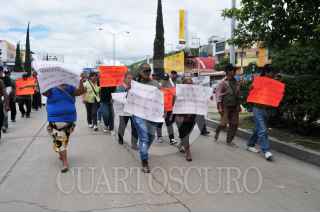 CHILPANCINGO, GUERRERO, 02SEPTIEMBRE2013.- Policías Comunitarios de Tixtla y Olinala, de la Coordinadora Regional de Autoridades Comunitarias (CRAC), salieron en caravanas de camionetas hacia la capital del estado, donde llevaron una marcha del parque Margarita Maza de Juárez, hacia el zócalo, apostándose en frente de instituciones bancarias y de un local de hamburguesas, colocaron mantas y llevaron a cabo un mitin, en el que enfatizaron la liberación del comandante regional Nestora Salgado García, así como de policías comunitarias, y, la presentación de 2 policías comunitarios que desaparecieron, Gonzalo Molina dijo están encarcelados o ya los ejecutaron sabemos cómo se las gasta el gobierno, después de permanecer ahí por espacio de una hora. Los manifestantes continuaron la marcha por la avenida Lázaro Cárdenas con dirección al congreso, para manifestarse ahí, frente a las instalaciones del poder ejecutivo, al arribar ahí trabajadores y diputados salieron con prontitud del recinto, entre ellos el diputado Héctor Astudillo Flores, quien salía acompañado de por lo menos 10 trabajadores del congreso de guerrero. FOTO: JOSÉ I. HERNÁNDEZ /CUARTOSCURO.COM