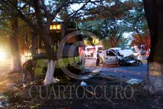 VILLAHERMOSA, TABASCO, 03SEPTIEMBRE2013.- Dos hombres resultaron con graves heridas y lesiones cuando perdieron el control de la camioneta de la empresa CEMEX en la que conducían a exceso de velocidad e invadieron carril contrario para impactarse de frente contra un autobús de pasajeros de la linea Transbus. Los hechos de transito fueron registrados sobre el boulevard Adolfo Ruiz Cortinez a la altura del fraccionamiento Bonanza, donde paramédicos de la Cruz Roja dieron los primeros auxilios y trasladaron a los heridos en estado de gravedad al mas cercano nosocomio. FOTO: MARCO POLO GUZMÁN HERNÁNDEZ /CUARTOSCURO.COM