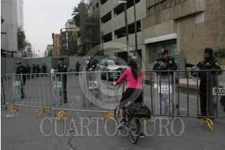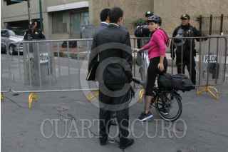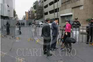 MÉXICO, D.F., 03SEPTIEMBRE2013.- La senadora Laura Rojas intentó llegar en su bicicleta a la sede la Cámara de Senadores, la parlamentaria se topo con un cerco policial que abarca varias cuadras a la redonda del inmueble ubicado en Reforma e Insurgentes. El día de hoy se discute la Ley del Servicio Docente en la Cámara Alta. FOTO: IVÁN MENDEZ /CUARTOSCURO.COM