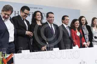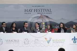 MÉXICO, D.F., 03SEPTIEMBRE2013.- El gobierno de Veracrúz ofreció una conferencia para detallar la agenda de la próxima "III Edición del Hay Festival", evento que ofrecerá actividades culturales de todo tipo como danza, música y teatro. La Orquesta Sinfónica de Xalapa participará en "El Ágora", uno de los recintos culturales más representativos de la ciudad. El costo de los boletos irá desde los 50 hasta los 120. La derrama económica fue de 10 millones de pesos. Asistieron Oscar Montes Eriksen,Dir. de desarrollo del Festival Hay, Julio Trujillo, Dir. Editorial de la dirección general de publicaciones de CONACULTA, Carlos Joaquin Gonzalez, Subsecretario de operación turística de la SECTUR, Cristina Fuentes la Roche,Dir. del festival Hay en Xalapa, Henry Grappa Guzmán, Secretario de turismo, cultura y cinematografía de Veracrúz, Sofia Martha, Coordinadora de la consejería cultural de la embajada de España y Lena Milosevic; Directora General de British Council México. FOTO: ALEJANDRO NEYRA /CUARTOSCURO.COM