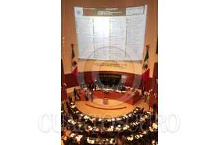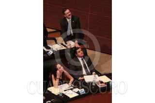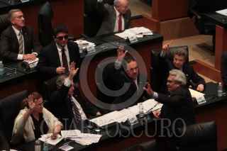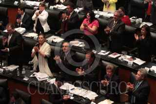 MÉXICO, D.F., 03SEPTIEMBRE2013.- La bancada priísta en el Senado aplaude al finalizar la votación con la que fue aprobada la Ley General del Servicio Profesional Docente. Dicha ley incluye la aplicación de ciertos mecanismos para evaluar a los profesores y sancionar a quienes reprueben los exámenes. La iniciativa quedó aprobada por 102 votos a favor y 22 en contra. FOTO: JUAN PABLO ZAMORA /CUARTOSCURO.COM