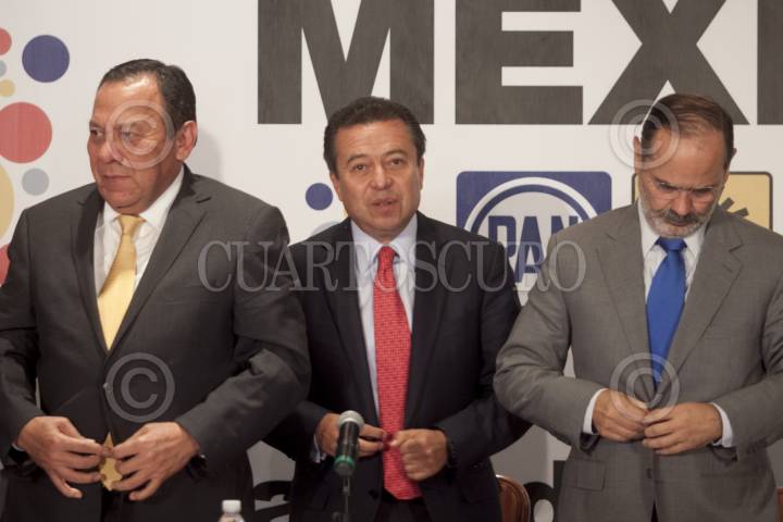 MÉXICO, D.F., 04SEPTIEMBRE2013.- Aurelio Nuño, jefe de la Oficina de la Presidencia, Jesús Zambrano Grijalva, líder nacional del PRD, Ciro Murayama, investigador, Aleida Callejas, Asociación Mexicana de Derecho a la Información, Raúl Trejo Delarbre, investigador y catedrático de la UNAM, César Camacho Quiroz, dirigente nacional del PRI y Daniel Giménez Cacho, actor y director de cine, durante el encuentro entre el Consejo Rector del Pacto por México con organizaciones civiles quienes entregaron un documento con el título "legislación secundaria en materia de telecomunicaciones". FOTO: MOISÉS PABLO /CUARTOSCURO.COM