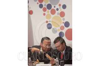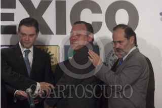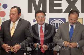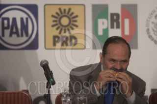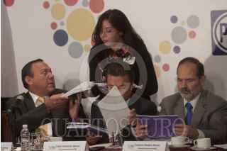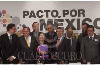 MÉXICO, D.F., 04SEPTIEMBRE2013.- Aurelio Nuño, jefe de la Oficina de la Presidencia, Jesús Zambrano Grijalva, líder nacional del PRD, Ciro Murayama, investigador, Aleida Callejas, Asociación Mexicana de Derecho a la Información, Raúl Trejo Delarbre, investigador y catedrático de la UNAM, César Camacho Quiroz, dirigente nacional del PRI y Daniel Giménez Cacho, actor y director de cine, durante el encuentro entre el Consejo Rector del Pacto por México con organizaciones civiles quienes entregaron un documento con el título "legislación secundaria en materia de telecomunicaciones". FOTO: MOISÉS PABLO /CUARTOSCURO.COM