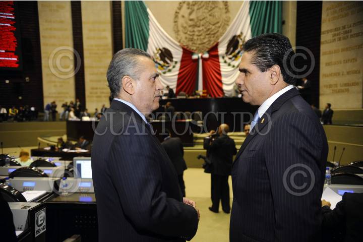 MÉXICO, D.F., 05SEPTIEMBRE2013.- Los diputados del PRI, Manlio Fabio Beltrones y de Nueva Alianza, Fernando Bribiesca Sahagún durante la sesión ordinaria de la Cámara de Diputados. FOTO: CUARTOSCURO.COM
