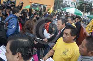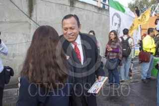 MÉXICO, D.F., 06SEPTIEMBRE2013.- Jesús Zambrano, líder nacional del PRD, volanteo a la salida del metro Buenavista para invitar a la ciudadanía a que participe en la cadena humana que tienen planeada el próximo 15 de septiembre en defensa del petroleo. FOTO: MOISÉS PABLO /CUARTOSCURO.COM