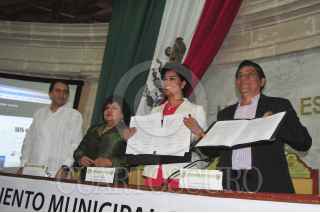 CHILPANCINGO, GUERRERO, 06SEPTIEMBRE2013.- El ayuntamiento de Chilpancingo realizó la “Sexta sesión ordinaria abierta de cabildo” en donde los alcaldes Elizabeth Morales García y Mario Moreno Arcos de los municipios de Xalapa de Enríquez en Veracruz y Chilpancingo de los Bravos en Guerrero, respectivamente, firmaron un convenio de hermanamiento entre ellos. El evento se llevó a cabo en el auditorio del Tribunal Superior de Justicia. FOTO: ISAAC HERNANDÉZ /CUARTOSCURO