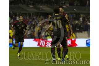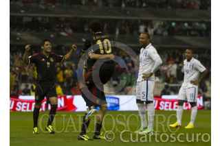 MÉXICO, D.F., 06SEPTIEMBRE2013.- Oribe Peralta junto a Geovani Dos Santos festeja el primer gol del equipo mexicano durante el partido correspondiente a la jornada 7 de la Hexagonal Final de la Eliminatoria rumbo a Brasil 2014 entre México y Honduras y llevado acabo en el estadio Azteca. FOTO: ADOLFO VALTIERRA / CUARTOSCURO.COM