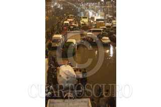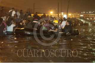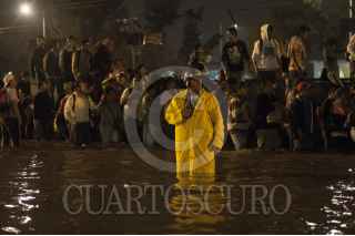 MÉXICO, D.F., 06SEPTIEMBRE2013.- Un gran tramo de la avenida Zaragoza quedó inundado por la intensa lluvia que azoto a toda la capital, varios decenas de autos quedaron varadas por la altura del agua, las afectaciones más severas se dieron a la altura del Puente de la Concordia, entre las estaciones del metro Acatitla y Santa Martha. Miles de personas caminaron la avenida Zaragoza desde el metro Aeropuerto a Acatitla al no haber transporte público. Brigadas de la secretaria de Desarrollo Social ayudaron a pasar a las personas con ayuda de lanchas inflables ya que el nivel de agua llegaba arriba de la cintura. FOTO: DIEGO SIMÓN SÁNCHEZ /CUARTOSCURO.COM