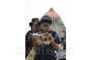 MÉXICO, D.F., 07SEPTIEMBRE2013.- Alumnos, padres de familia y docentes asistieron al Monumento a la Revolución al “Sentón de Lectura” convocado por los profesores de la CNTE para protestar por la Reforma Educativa. Después de realizar recomendaciones de libros y lectura en voz alta, se trasladaron al hemiciclo a Juárez para continuar la actividad. FOTO: MITZI BLANQUET /CUARTOSCURO.COM