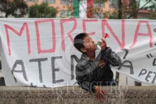 MÉXICO, D.F.08SEPTIEMBRE2013.- Simpatizantes de Andrés Manuel López Obrador, líder del Movimiento de Regeneración Nacional (MORENA), acudieron a su mítin realizado en la Avenida Juárez casi al cruce con Balderas en el centro de la Ciudad de México para dar su postura ante las Reformas Energética, Educativa y Fiscal de Entique Peña Nieto. FOTO: JUAN PABLO ZAMORA /CUARTOSCURO.COM