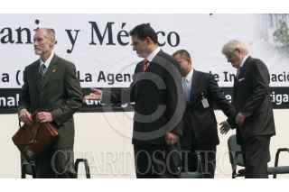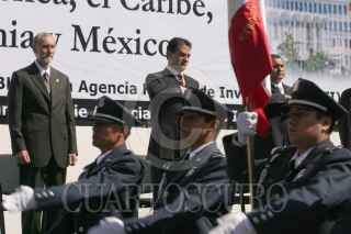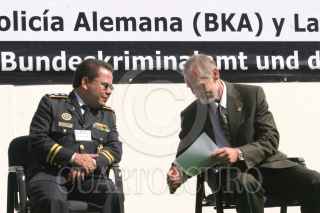 MEXICO, DF, 10OCTUBRE2005.- Piter Fobé, jefe de la policia Alemana (BKA), Daniel Cabeza de Vaca, titular de la Procuraduria General de la República y Genaro García, titular de la AFI durante la ceremonia de inauguración del Simposium de Jefes de Policia de Centro América, el Caribe, Alemania y México. FOTO: Nelly Salas/CUARTOSCURO.COM