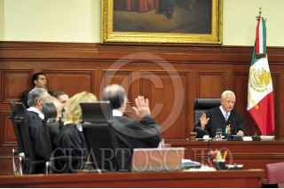 MÉXICO, D.F., 09SEPTIEMBRE2013.- La ministra Olga María del Carmen Sánchez Cordero de García Villegas y el ministro José Ramón Cossío Díaz en la sesión de hoy en la SCJN. FOTO: CUARTOSCURO.COM