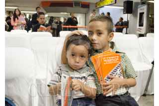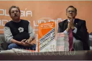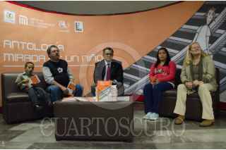 MÉXICO, D.F., 10SEPTIEMBRE2013.- Joel Ortega, director del Metro (a la izquierda) y el escritor Paco Ignacio Taibo II, presentaron el libro de cuentos Antología “Un transporte de aventuras: El Metro a través de la mirada de los niños”, escrito por niños entre 6 y 12 años. Para la compilación final de textos se realizó una selección de los ganadores de la convocatoria “Cuéntame tu aventura en el Metro”, en el marco de las celebraciones del 44 aniversario del Metro en la Ciudad de México. “Los cuentos son producto de las vivencias de los niños cuando se suben al metro porque el metro mueve mucho pero sobretodo mueve consciencias”, expresó el director. Con un tiraje de 100 mil ejemplares se distribuirá, con ayuda de la Ola Naranja del Instituto Nacional de la Juventd (INJUVE), en diferentes líneas del metro. FOTO: MARÍA JOSÉ MARTÍNEZ / CUARTOSCURO.COM