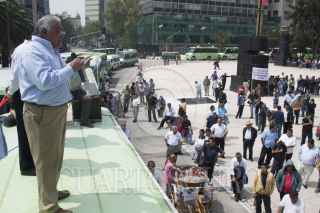 MÉXICO, D.F., 10SEPTIEMBRE2013.- Transportistas de Rutas Unidas denunciaron que fueron defraudados por la Setravi encabezada en ese momento por Armando Quintero, ya que 52 concesionarios de la Ruta 11 cumplieron con los requisitos publicados en la Gaceta Oficial del 9 de Diciembre del 2008, para poder participar en el corredor 2 de Metrobús, sin embargo, en el acta constitutiva de la personal moral Transportes SAJJ S.A de C.V. no se incluyeron a estos trabajadores del volante, ellos aseguran que fueron burlados por autoridades del GDF. FOTO: MOISÉS PABLO /CUARTOSCURO.COM