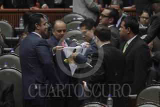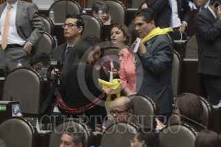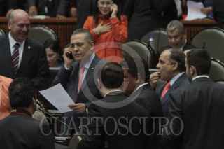 MÉXICO, D.F.10SEPTIEMBRE2013.-Los diputados Manuel Añorve, del PRI, y Silvano Aureoles del PRD, juegan con pañoletas repartidas por la diputada Teresa de Jesús Mojica Morga organizadora del “Foro Nacional Afrodescendiente" en la Cámara de Diputados. FOTO: JUAN PABLO ZAMORA /CUARTOSCURO.COM