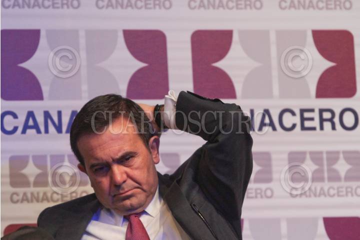 MÉXICO, D.F.11SEPTIEMBRE2013.- José Luís Preciado, coordinador de la bancada Panista en el Senado saluda al presidente de la CANACERO, Alonso Ancira, esta mañana en la inaguración del Tercer Congreso de la Industria Siderúrgica Mexicana. FOTO: JUAN PABLO ZAMORA /CUARTOSCURO.COM