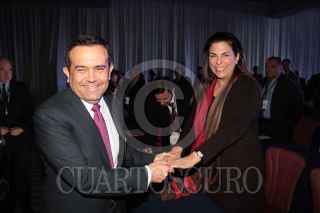 MÉXICO, D.F.11SEPTIEMBRE2013.- José Luís Preciado, coordinador de la bancada Panista en el Senado saluda al presidente de la CANACERO, Alonso Ancira, esta mañana en la inaguración del Tercer Congreso de la Industria Siderúrgica Mexicana. FOTO: JUAN PABLO ZAMORA /CUARTOSCURO.COM