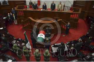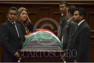 MORELIA, MICHOACÁN, 12SEPTIEMBRE2013.- Ayer por la noche se realizó en el Congreso del Estado una sesión solemne para despedir al diputado local por el distrito de Coalcomán, Osbaldo Esquivel Lucatero, quién fue asesinado a “machetazos” por 4 sujetos en la salida a Pátzcuaro. El político perredista estuvo encarcelado por unos meses a raíz de la operación del “Michoacanazo” en 2009, cuando autoridades federales detuvieron a 30 funcionarios, policías y alcaldes de Michoacán, por supuestamente integrar una red de protección del cartel “La Familia”. El gobernador interino, Jesús Reyna García, no asistió a la ceremonia luctuosa. FOTO: ALAN ORTEGA / CUARTOSCURO.COM