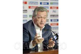 MÉXICO, D.F., 12SEPTIEMBRE2013.- Victor Manuel Vucetich, fue presentado esta tarde como nuevo director técnico de la selección nacional de México; durante una conferencia de prensa encabezada por Héctor González Iñarritu, director de Selecciones Nacionales y Justino Compeán, que minutos después abandonó la conferencia. Ésto se llevó acabo en el Centro de Alto Rendimiento (CAR). FOTO: MISAEL VALTIERRA / CUARTOSCURO.COM