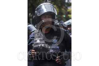 MÉXICO, D.F., 12SEPTIEMBRE2013.- Jose Luis Sanchez Cortez, mejor conocido por su indicativo "Espartaco", es el comandante de la Unidad de Restablecimiento del Orden Público de la Policia Federal Preventiva, durante la manifestación que realizaron los maestrso en la Secretaria de Gobernación. El Jefe Espartaco, fue el encargado de dirigir a la Policia Federal en las manifestaciones ocurridas por los maestros de la CETEG en Guerrero. FOTO: ENRIQUE ORDÓÑEZ /CUARTOSCURO.COM
