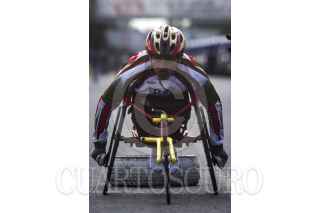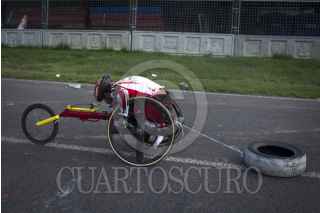 MÉXICO, D.F., 12SEPTIEMBRE2013.- Un atleta paralimpico, entrena en su silla de ruedas en el autodromo Hermanos Rodriguez. FOTO: ENRIQUE ORDÓÑEZ /CUARTOSCURO.COM
