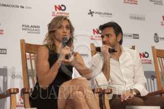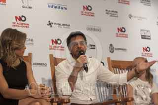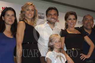 MÉXICO, D.F., 13SEPTIEMBRE2013.- Arcelia Ramírez, Jessica Lindsey, Eugenio Derbez, Loreto Peralta y Alessandra Rosaldo, durante la rueda de prensa de la película No se Aceptan Devoluciones, la cual fue estrenada hace unos días en las salas de Estados Unidos en donde le ha ido muy bien en la taquilla. FOTO: MOISÉS PABLO /CUARTOSCURO.COM