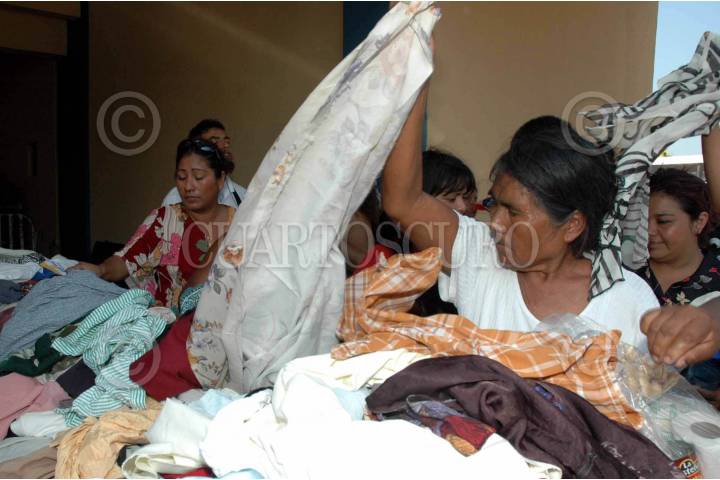 VERACRUZ,VERACRUZ.-11OCTUBRE2005.- Personas que perdieron muchas de sus pertenencias asisten a los centros de acopio para recibir ropa, zapatos y despensas, las autoridades aseguran tener abasto suficiente para ofrecer esta ayuda hasta por dos semanas más si ningún problema. FOTO: Isaac Aguilar/CUARTOSCURO.COM