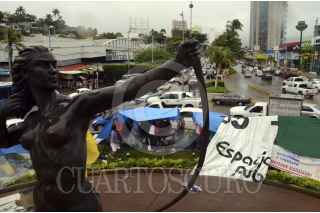 ACAPULCO, GUERRERO, 13SEPTIEMBRE2013.- Estudiantes rechazados de la Universidad Autónoma de Guerrero pertenecientes al Movimiento Quiosco dieron por terminado su plantón, después de acampar una noche en la glorieta de la Diana. Explicaron que el rector de la UAG, Javier Saldaña Almazán, les ofreció cinco espacios en odontología y enfermería, así como un curso de preparación para aprobar el examen Ceneval del próximo año. FOTOS: BERNANDINO HERNÁNDEZ /CUARTOSCURO.COM