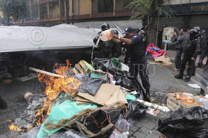 MÉXICO, D.F., 13SEPTIEMBRE2013.- Elementos antimotines de la Policía Federal, desalojaron de la plancha del zócalo y calles aledañas al plantón que mantenían integrantes CNTE de la sección 22. FOTO: SAÚL LÓPEZ /CUARTOSCURO.COM
