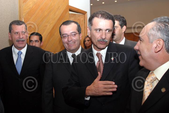 MEXICO, D.F., 11OCTUBRE2005.- María de los Angeles Moreno, fiscal especial para delitos electorales, Heliodoro Díaz, presidente de la Cámara de Diputados, Carlos Abascal, Secretario de Gobernación y Enrique Jackson, presidente del Senado, durante la ceremonia de los XV años de creación del Instituto Federal Electoral. FOTO: Moisés Pablo/CUARTOSCURO.COM