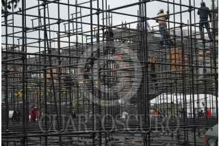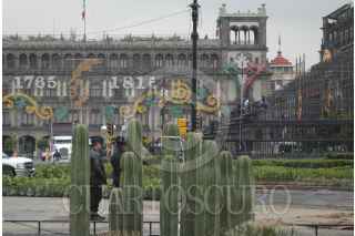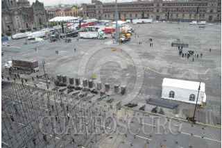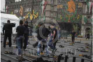 MÉXICO, D.F., 1ESEPTIEMBRE2013.- Después del desalojo de los maestros de la CNTE realizado ayer por la tarde, comenzaron los trabajos de instalación del inmobiliario necesario para los festejos del grito de independencia y el desfile milita del 16 de septiembre. FOTO: MITZI BLANQUET /CUARTOSCURO.COM