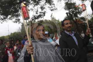 OAXACA, OAXACA, 14SEPTIEMBRE2013.- Integrantes del FUL - APPO realizaron esta tarde la "marcha de las antorchas" en apoyo a los profesores de la CNTE desalojados la tarde del viernes en la ciudad de México, los manifestantes aseguraron que en Oaxaca no habrá grito y que permanecerán en plantón en el zócalo de la ciudad. FOTO: ARTURO PÉREZ ALFONSO /CUARTOSCURO.COM