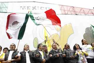 MÉXICO, D.F., 15SEPTIEMBRE2013.- La dirigencia del PRD realizó una cadena humana como como parte de las acciones para evitar la privatización del petróleo. FOTO: IVÁN STEPHENS /CUARTOSCURO.COM