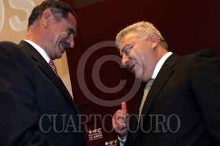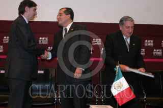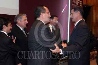 MEXICO, D.F., 11OCTUBRE2005.- María de los Angeles Fromow, fiscal especial para delitos electorales, Heliodoro Díaz, presidente de la Cámara de Diputados, Carlos Abascal, Secretario de Gobernación y Enrique Jackson, presidente del Senado, durante la ceremonia de los XV años de creación del Instituto Federal Electoral. FOTO: Moisés Pablo/CUARTOSCURO.COM