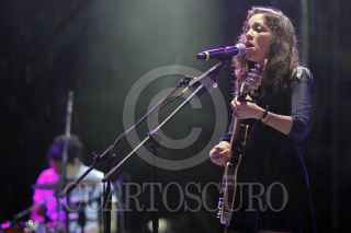 PUEBLA, PUEBLA, 15SEPTIEMBRE2013.- La cantante Natalia Lafourcade se presentó ante el público poblano que se dio cita en el zócalo de la ciudad como parte de los festejos patrios organizados por el gobierno estatal. FOTO: HILDA RÍOS /CUARTOSCURO.COM