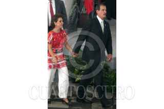 MEXICO, D.F., 12OCTUBRE2005.- Vicente Fox Quesada, Presidente de la República y Marta Sahagún, esposa del mandatario, durante la Premiación del 7º Concurso Nacional “Las Narraciones de Niñas y Niños Indígenas”, en la Secretaría de Educación Pública. FOTO: Moisés Pablo/CUARTOSCURO.COM