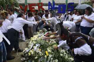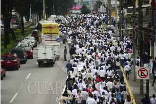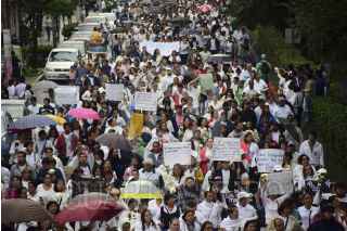 XALAPA, VERACRUZ., 16SEPTIEMBRE2013.- Aproximadamente 40 mil maestros y ciudadanos salieron esta tarde a marchar contra la represión que sufrieron estudiantes y docentes durante el desalojo en la plaza Lerdo por elementos de la Secretaria de Seguridad Pública del Estado. Caminaron de la Normal veracruzana hacia el Congreso Estatal en donde colocaron un ataúd y flores blancas, simulando la muerte de la educación en el estado. FOTO: RUBÉN ESPINOSA / CUARTOSCURO.COM