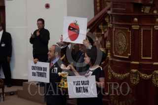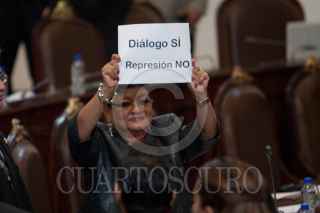 MÉXICO, D.F., 17SEPTIEMBRE2013.- La diputada Ernestina Godoy sacó una hoja con la leyenda "Diálogo Sí Represión No", esto en alusión al desalojo de maestros por parte de la Policía Federal el pasado viernes del zócalo capitalino, en el marco de la entrega del 1er Informe de Gobierno de Miguel Ángel Mancera, Jefe de Gobierno. FOTO: MOISÉS PABLO /CUARTOSCURO.COM