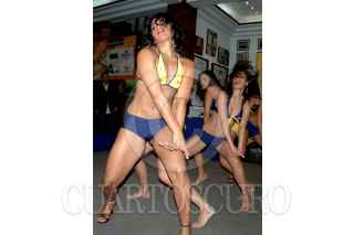 MEXICO, D.F. 12OCTUBRE2005.- Edecanes realizaron bailes como una pequeña demostración de lo que se verá en el torneo de volibol playero en Acapulco del 25 al 30 de octubre. FOTO: Iván Stephens/CUARTOSCURO.COM