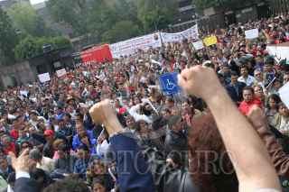 MEXICO, D.F. 12OCTUBRE2005.- Integrantes del Sindicato Nacional de Trabajadores del Seguro Social continuan concentrados a las puestas de la sede de su sindicato. FOTO: Nelly Salas/CUARTOSCURO.COM