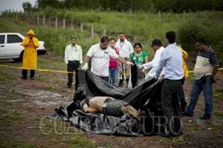 CULIACÁN, SINALOA, 18SEPTIEMBRE2013.- A un costado de la carretera conocida como la Costerita fue localizado esta mañana el cuerpo de un hombre sin vida el cual presentaba alrededor de 5 impactos de bala de grueso calibre , la víctima estaba amarrada de pies y manos así como el rostro encintado, elementos periciales y ministerio publico acudieron al lugar para investigar y dar fe de los hechos. FOTO: RASHIDE FRIAS /CUARTOSCURO.COM