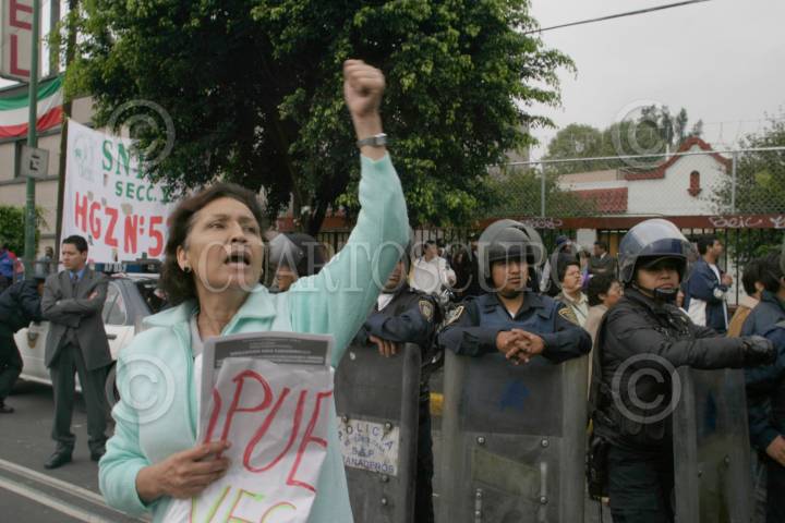 MEXICO, D.F. 12OCTUBRE2005.- Integrantes del Sindicato Nacional de Trabajadores del Seguro Social continuan concentrados a las puestas de la sede de su sindicato. FOTO: Nelly Salas/CUARTOSCURO.COM