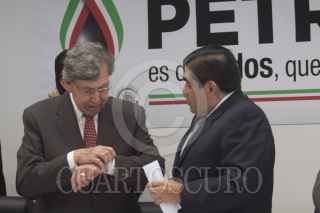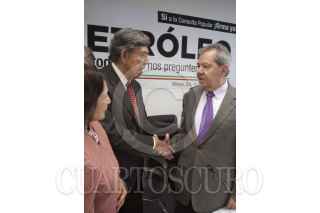 MÉXICO, D.F., 18SEPTIEMBRE2013.- Ifigenia Martínez, Cuauhtémoc Cárdenas, coordinador de asuntos internacionales del GDF y Porfirio Muñoz Ledo, Comisionado para la Reforma Política del Distrito Federal, ofrecieron una conferencia de prensa en la cual presentaron la campaña "El petróleo es de todos, que nos pregunten a todos" , en la cual se hará una convocatoria por Internet para buscar que al menos 2% del padrón nominal se manifieste en contra de lo que ellos llaman la privatización del petróleo. FOTO: MOISÉS PABLO /CUARTOSCURO.COM