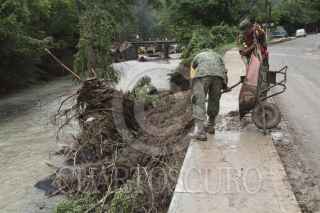 PISAFLORES, HIDALGO 18SEPTIEMBRE2013.- Personal del Ejército Mexicano implementó el Plan DN III en el municipio de Pisaflores, al norte de la Huasteca Hidalguense, debido a las precipitaciones pluviales generadas por el Huracán Ingrid. Los desgajamientos de cerros son la constante en diversas comunidades de este Municipio, asi como el desbordamineto de varios brazos del Río Moctezuma. Familias fueron afectadas con la pérdida total de sus bienes y varios documentos personales en los ejidos de Plan de Ayala y Chalahuite sin que al momento se registren perdidas humanas. FOTO: JUAN PABLO ZAMORA /CUARTOSCURO.COM