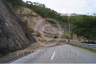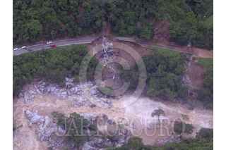 MÉXICO, D.F., 19SEPTIEMBRE2013.- Vistas aéreas de la Autopista del Sol en donde se observa la serie de deslaves que sufrió por las intensas lluvias provocados por la tormenta Manuel y el huracán Ingrid, la Secretaría de Transportes y Comunicaciones prevee que el día de mañana se abra un carril de esta vialidad, que esta cerrada desde el pasado lunes. FOTO: SCT /CUARTOSCURO.COM